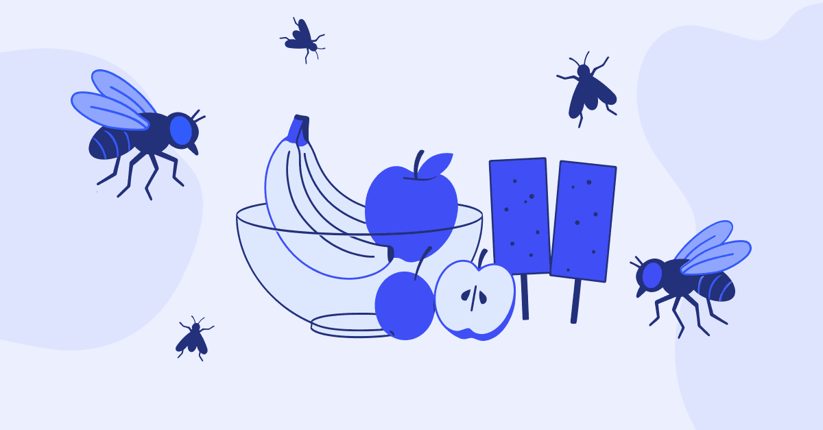 Bananflugor, även kallade fruktflugor, dras till dofter av jäsning och övermogen frukt. Det kan räcka med en glömd banan i fruktskålen eller en oöppnad juicekartong i pappersåtervinningen för att locka dem. De lägger hundratals ägg åt gången, och på bara en dryg vecka kan en ny generation vara fullt utvecklad. Täta sopkärl, rena ytor och kylförvaring av frukt gör stor skillnad, men om flugorna redan är på plats behöver du ta till mer direkta metoder.