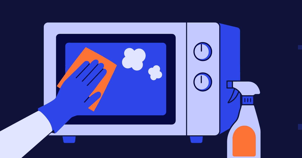 För att slippa göra en stor rengöring varje gång är det bra att täcka maten med lock eller mikrosäker plast vid uppvärmning. Torka bort stänk direkt när de uppstår och diska tallriken regelbundet. Genom att göra en snabb rengöring med citron eller diskmedel en gång i veckan slipper du att smuts och lukt hinner byggas upp.